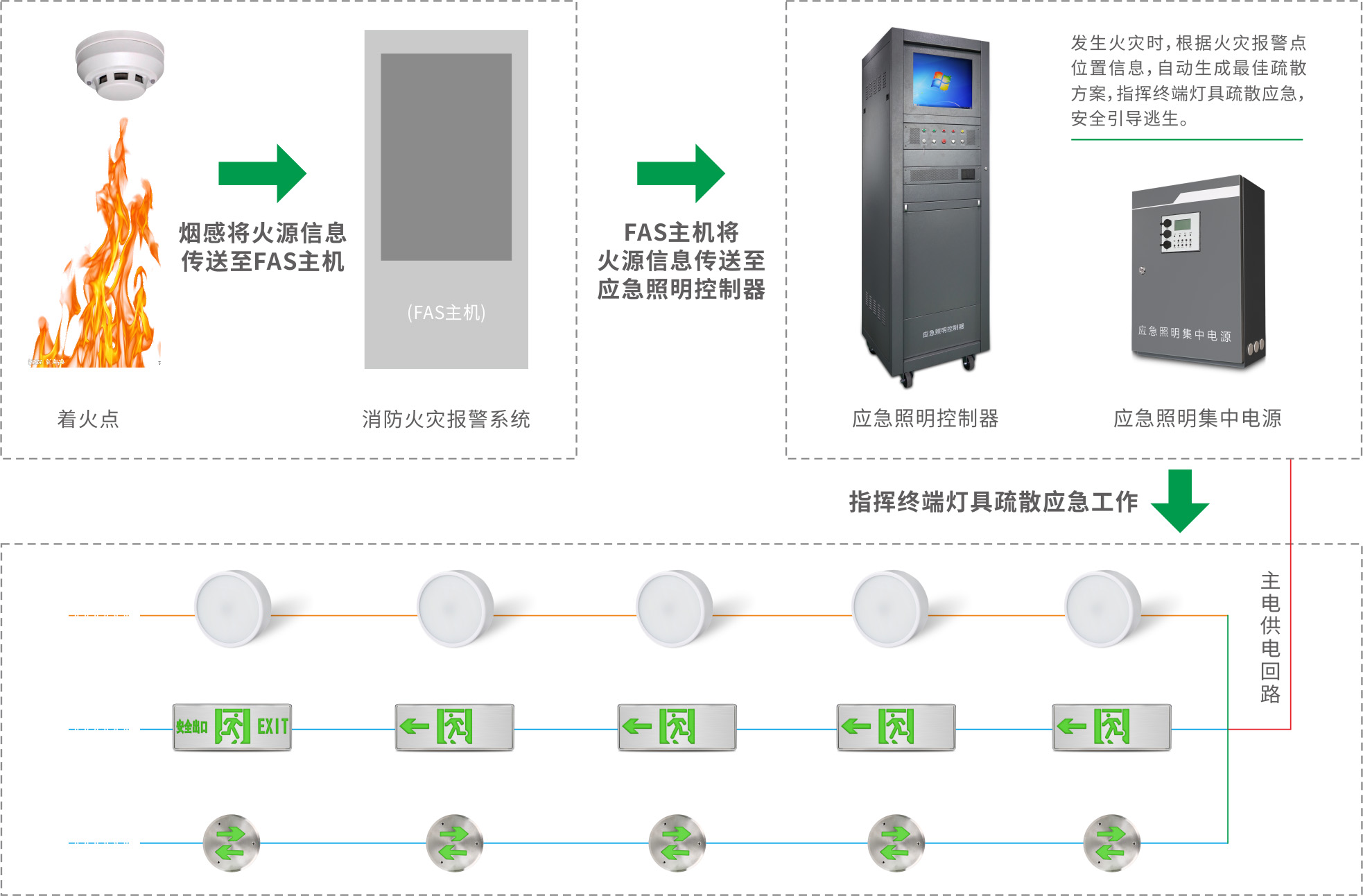 “智能疏散系統(tǒng)”是由智能疏散系統(tǒng)控制主機(jī)、消防應(yīng)急電源、消防應(yīng)急標(biāo)志燈具、消防火災(zāi)報(bào)警主機(jī),火災(zāi)探測(cè)器等多種設(shè)備組成的一套智能消防疏散系統(tǒng)。該系統(tǒng)具有人機(jī)交互界面,可對(duì)應(yīng)急標(biāo)志燈具實(shí)時(shí)巡檢、并與報(bào)警主機(jī)系統(tǒng)聯(lián)動(dòng)、在有火災(zāi)發(fā)生時(shí),根據(jù)起火位置智能選擇最佳逃生路線進(jìn)行疏散指示